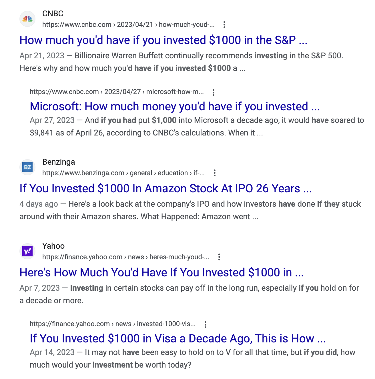 Reflecting back on history is not meant to teach you the lesson “if only I had put $1,000 in Amazon!” It’s meant to teach you, “what made Amazon so special that putting in just $1,000 would have been such a boon?”