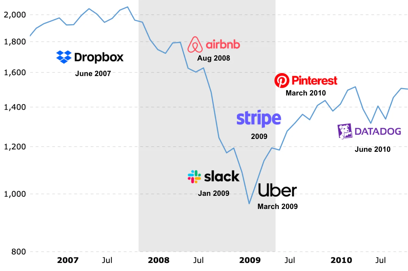 My very first post when I started writing consistently, one of the first things I talked about was cycles. As you see things like the financial crisis take place, you also see a smattering of exceptional companies get built around the same time.