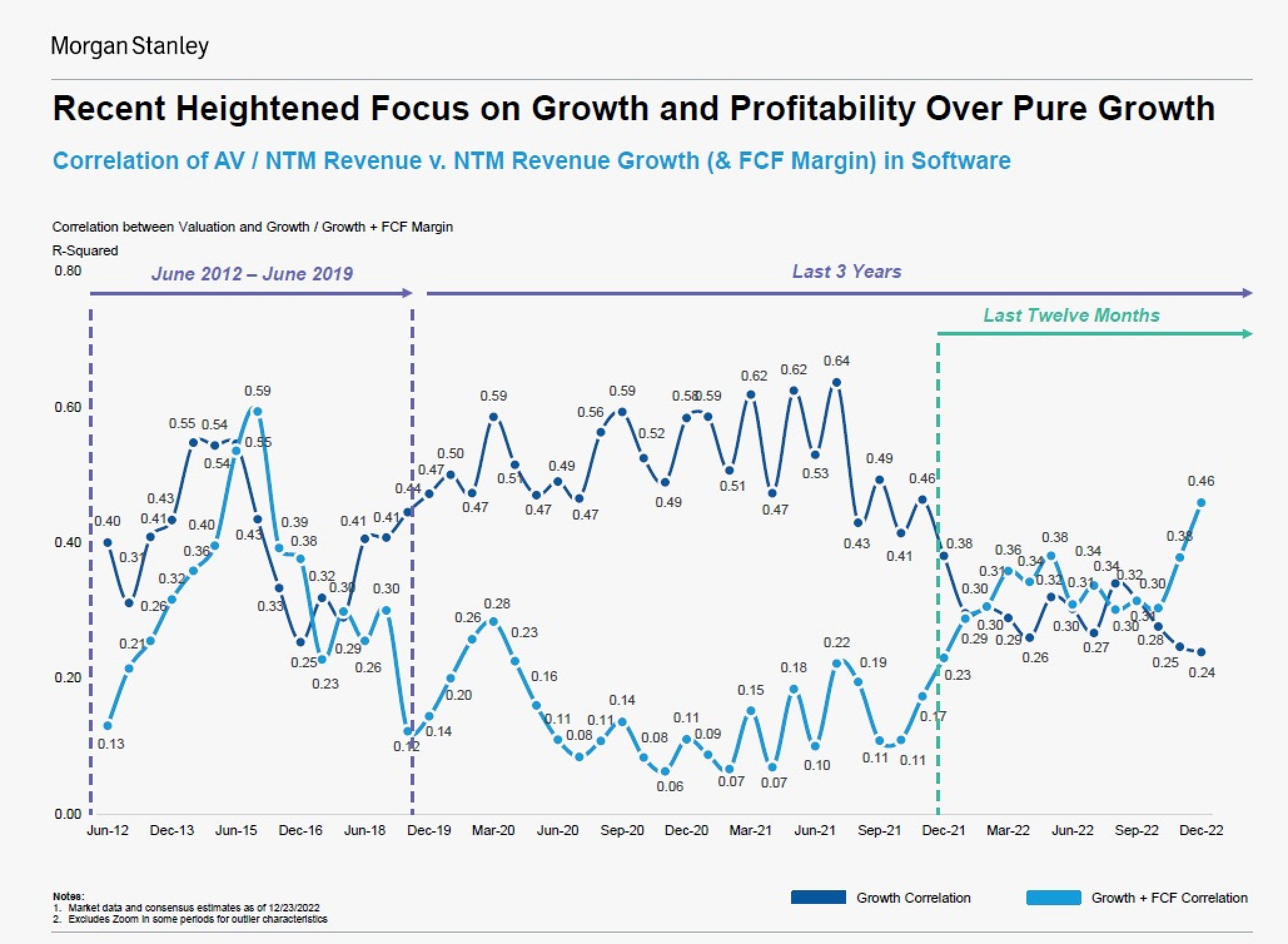 Before 2022, you saw a clear statistical correlation between growth and valuation multiples. Today, you see a clear statistical correlation between balanced profitability (e.g. rule of 40) and valuation multiples.
