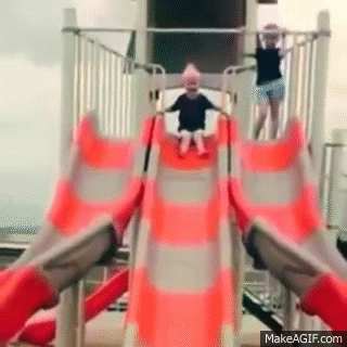 He took off, slamming into just about every turn on the way down. When he came to the end, looking expectedly for the safety net of his brothers arms, my 6-year old had his arms up in the air, and was 5 feet from the bottom of the slide. My 3-year old was certainly not going to clear the distance, and was headed down, not up. His only landing was the ground.
