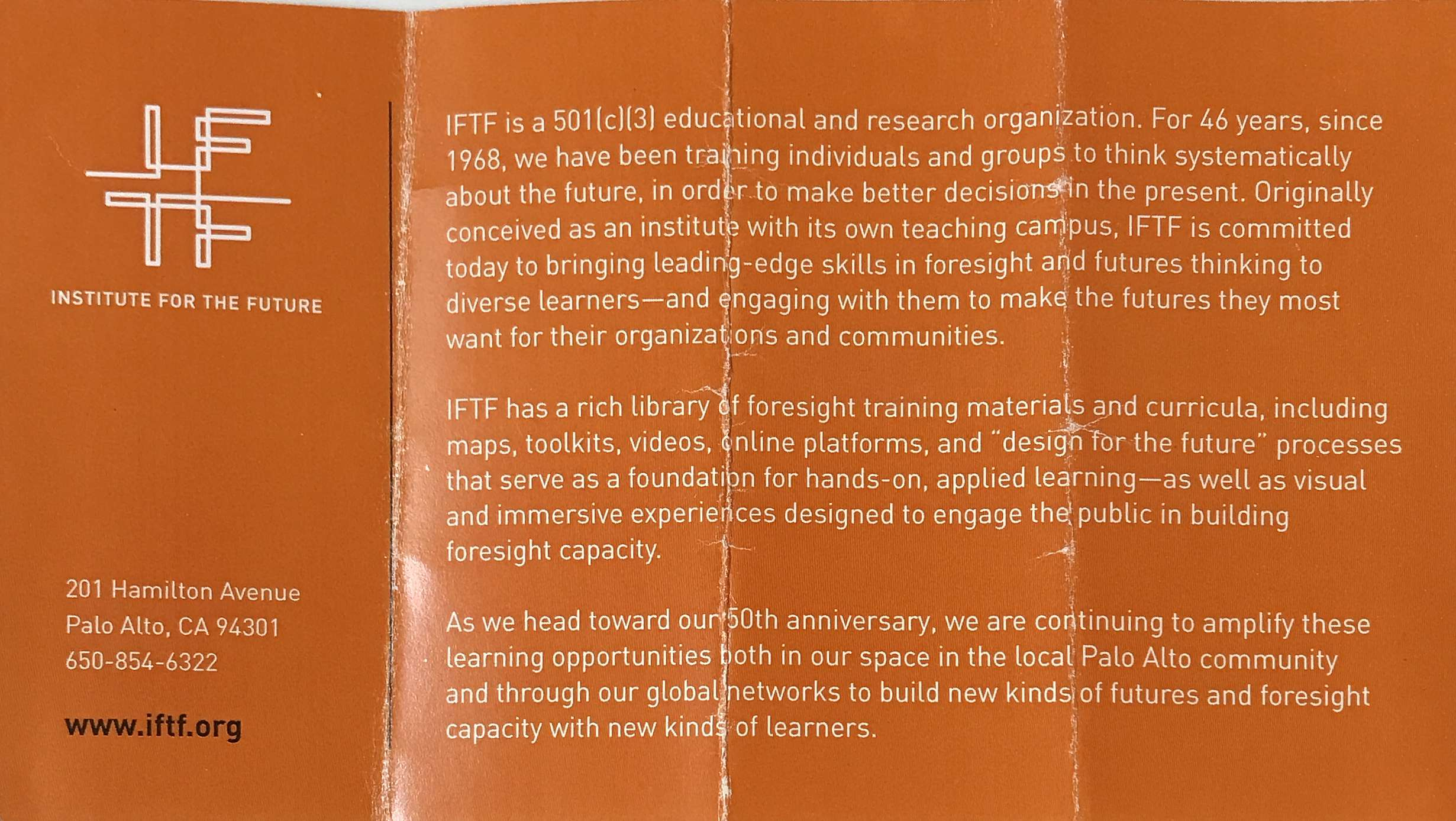 One day, I got curious enough that I went inside to learn more about what they did. I don’t know what I expected (time machine manufacturing, maybe?) But turned out the business was pretty normal. Advisory services, partnerships, and a pretty cool 10-year forecast that they’ve been doing for 50 years! I still have the flyer they gave me when I walked in.