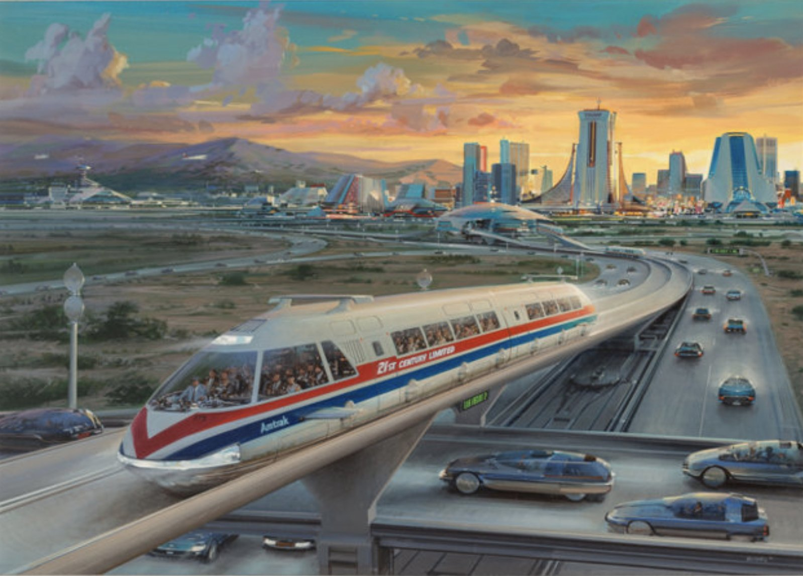 “You’ve just had a big weekend in Las Vegas… you contemplate the drive back to Los Angeles. Then you remember: This is the year 2050, and you don’t have to drive back LA. Instead, you can take Amtrak’s 300-mph bullet train… you’ll be home in an hour.”