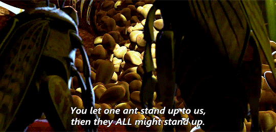 Whether its the Magna Carta, or the Declaration of Independence, there are points in time when people have thrown off the top-down preferences in favor of their “own will.” Perhaps one of the greatest demonstrations of the inspired many against the powerful few comes from A Bug’s Life.