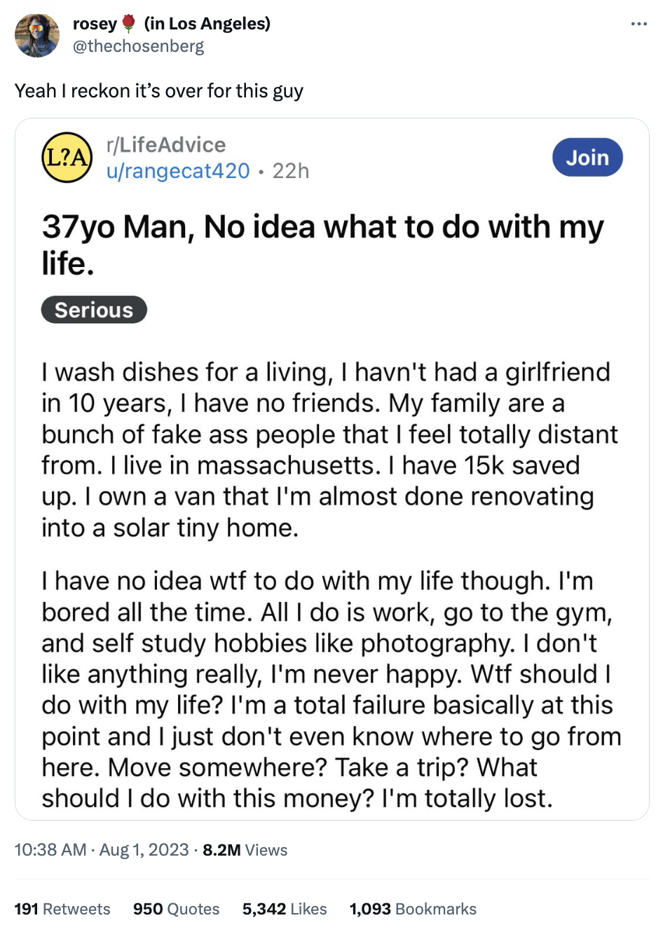 I saw this tweet (or whatever we’re calling them now) earlier this week, and I can’t stop thinking about it.