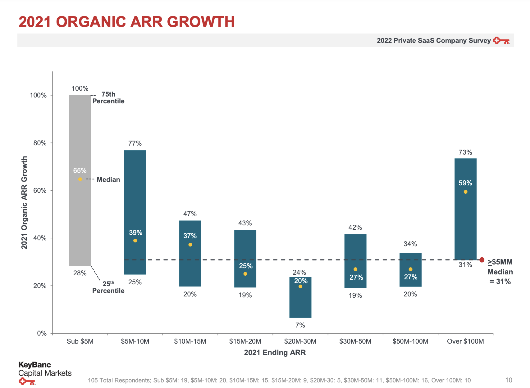 Every year KeyBanc puts out the results of their private SaaS company survey. Rather than showing the very best they show, by definition, what an “average” software company looks like.