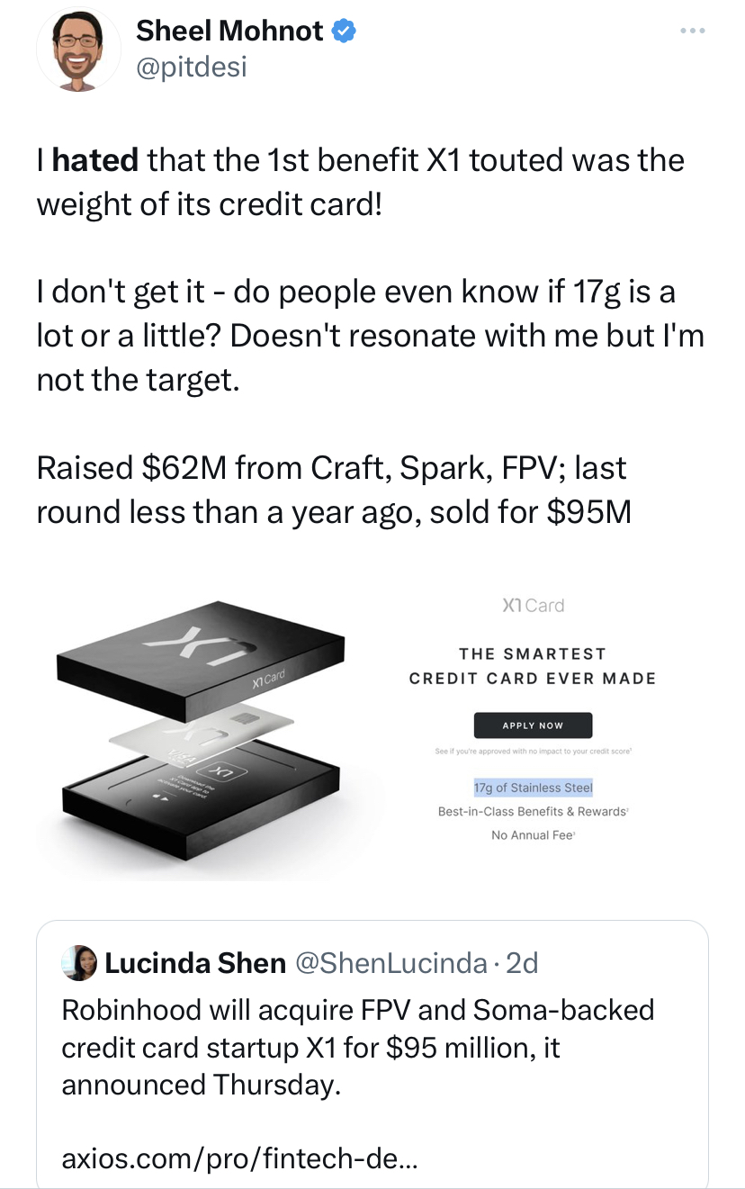 I don’t know if X1 could have gotten where they got to without venture capital, but if they could have then what effectively becomes a failure could have been a life changing outcome for a few founders.