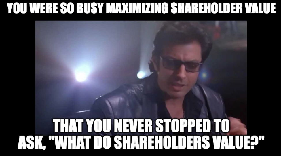 I remember taking my first finance class in college, and learning about the primary principle of “maximizing shareholder value.” Creating value is the primary driver of capitalism. For better, or worse, economic growth is predicated on creating value.